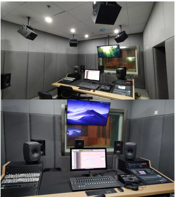 本項目包含了兩間錄音棚(簡稱為棚1與棚2),其中棚1為5.1.4的監聽配置,支持杜比全景聲制作;棚2為5.1的監聽配置。