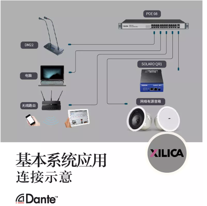 Dante數字音頻傳輸技術,是一種專業、無壓縮的、基于3層的IP網絡的新一代網絡音頻傳輸技術。它和傳統的音頻傳輸有著很大的區別,它僅使用一條網線就可以傳輸數字音頻、供電和控制同時進行,省去了極大的建設成本,減少了不必要的人力和財力。
