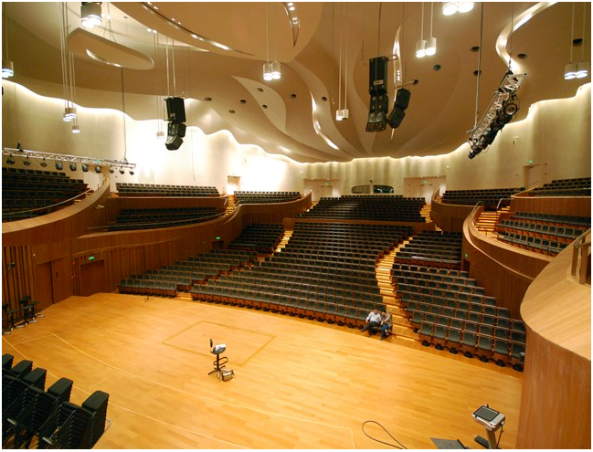 例如,江蘇大劇院音樂廳就主要采用的是線陣列擴(kuò)聲器,在場地較小、輔助擴(kuò)聲器較少的情況下也能覆蓋所有觀眾席位。