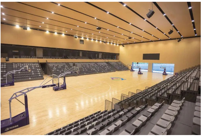 作為城市的文化名片,體育場館一如既往地將城市特色文化、實用性以及功能性完美的結合起來。場館在垂直向上進行疊加,布置了8大功能場館:游泳館、籃球場、羽毛球館、網球館、乒乓球館、擊劍館以及舞蹈室等多個專業賽事級別運動場地。不僅提供基本體育設施服務,還能滿足中小型賽事、體育運用與文化等多方面需求,同時,簡上體育綜合體在重塑城市精神和社區生活中扮演重要角色,滿足市民文化體育休閑娛樂健身等各項需求。 其中一層多功能綜合館,面積超過1200平方米,包含2000個坐席和3個籃球全場,可以承辦中小型賽事和活動。在擴聲系統的選擇上,面臨著場館層面積大,層高深,混響時間長,設備選擇需要滿足大聲壓級、高靈敏度、適合長距離投射和體積輕巧能減少高空懸掛的負荷,確保滿足極佳的指向性控制,保證音色的一致性,具備優異的安全性和穩定性。
