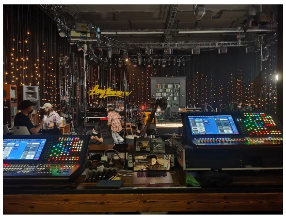 場景由兩張HD96-24調(diào)音臺登錄同一個賬號進(jìn)行云端同步,兩張控臺分別通過光纖連接至舞臺下方的兩張KLARK TEKNIK DN9680的OPTICAL口。備份調(diào)音臺通過光纖連接以外,另外通過網(wǎng)線連接上主DN9680的COPPER口,在兩組信號獨立備份使用的同時,還可以通過電腦對DN9680進(jìn)行連接方式的切換,備份調(diào)音臺可以快速地接管整個主控系統(tǒng),這樣能起到雙重保險的作用。