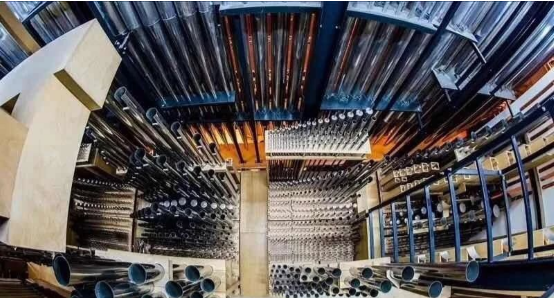 安放于音樂廳的管風琴造型典雅,音色飽滿,是目前國內體積最大、栓數最多、音管最多、音色最豐富的一架,擁有94個音栓,發聲管達6500根之多,能滿足各種不同流派作品演出的需要,因此被形象地稱為音樂廳的“鎮廳之寶”。