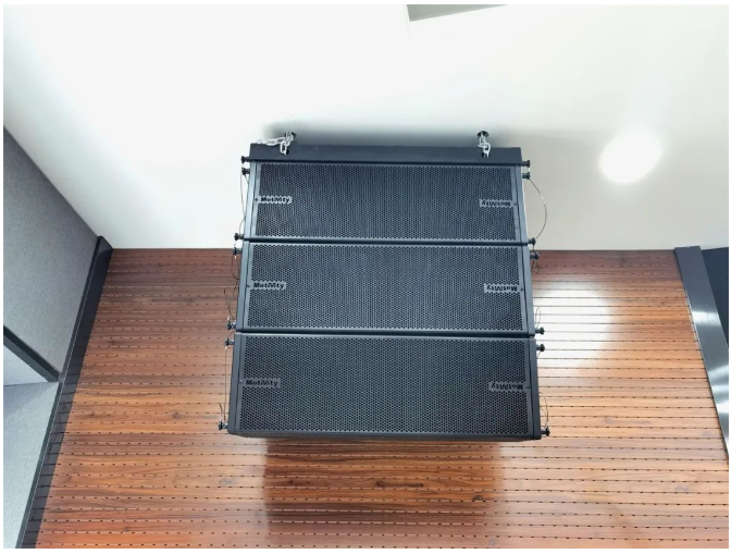,每邊三只組合吊掛,它們能夠形成一個連續、等相位的線性聲源,為觀眾區提供清晰準確的聲音覆蓋。再搭配兩只