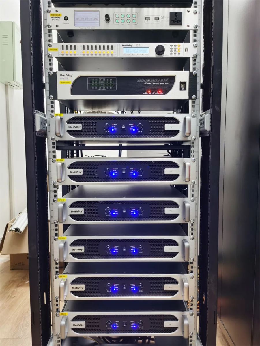 為了保障整個擴聲系統的效果與穩定性,讓系統的處理能力和工作效率更加出色,現場搭配使用了H系列功放(H2/H3/H6)、DP48和Stride-Pro數字音頻處理器、MX3232視頻混合矩陣、SC-902電源時序器、MD1810數字調音臺等設備。