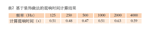 基于裝飾做法,初步計(jì)算的混響時(shí)間如表2所示。從表2可以看出,混響時(shí)間偏低,這會(huì)導(dǎo)致音質(zhì)非常干澀,缺乏豐滿度。