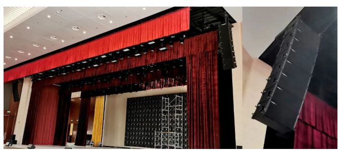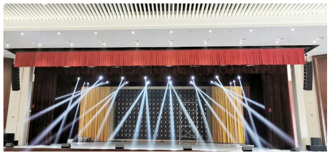 小報(bào)告廳左右主擴(kuò)采用德國(guó)TWAUDiOT20N點(diǎn)聲源 2只,搭配4只緊湊型超低B17i,拉聲像則由2只T20i點(diǎn)聲源負(fù)責(zé),后場(chǎng)補(bǔ)聲和舞臺(tái)返送則分別由左右鏡像對(duì)稱的全頻揚(yáng)聲器M12i和M12擔(dān)任,整個(gè)系統(tǒng)依然由RAM AudioZETTA系列功放進(jìn)行驅(qū)動(dòng)。